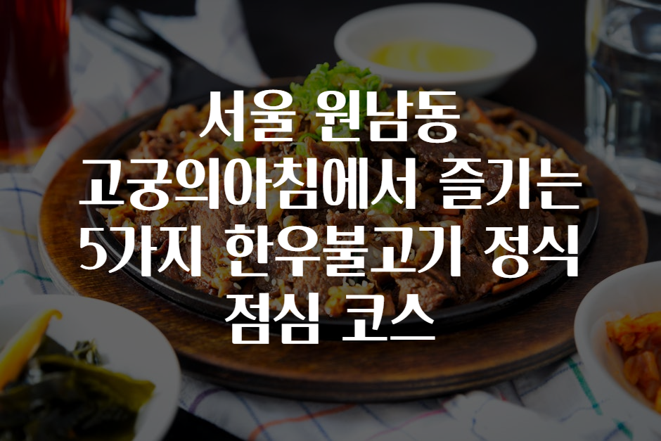 안녕하세요, 미식 여행자 여러분! 혹시 서울 한복판에서 전통과 현대가 어우러진 맛집을 찾고 계신가요? 🤔 오늘은 서울 원남동에 위치한 고궁의아침에서 맛볼 수 있는 5가지 종류의 한우불고기 정식 점심 코스를 소개해드리려고 해요. ✨ 한우의 풍미와 정성 가득한 한 상 차림으로 점심시간이 더욱 특별해지는 경험, 궁금하지 않으세요? 🎯